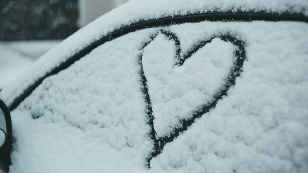 Image credit: Heart on snowy window of car parked on street in winter by Erik Mclean